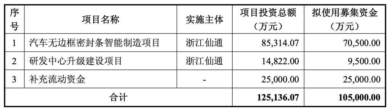 资料显示,浙江仙通主营业务为汽车密封条的研发、生产和销售。