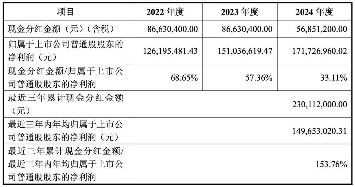 最近三年,浙江仙通累计现金分红金额为2.30亿元。